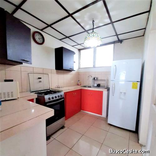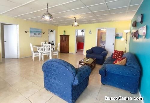 Coqueto y muy acogedor, completamente amoblado. Cocina equipada con horno y su respectivo menaje, 1 habitaciones doble, 1 sencilla y una matrimonial, 3 baños, sala comedor grande y balcón con mesa y sillas para cenar y disfrutar de la caída del sol relajadamente. No tiene aire acondicionado. Es fresco. y no cuenta con wifi. El condominio cuenta con garaje y 24 horas de guardiana privada. Se alquila por meses sueltos 700 Y por año corrido (entero) el precio mensual es especial SOLO!! $400 al mes.(incluye las alícuotas del condominio) Para más información, envíame un correo depballenitagmail y te responderé a la mayor brevedad posible.