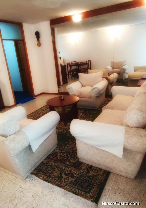 Suite amoblada, sala, comedor, cocina equipada, Dormitorio con baño completo, lavadora,tv cable. Inf: 0981959214