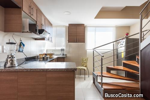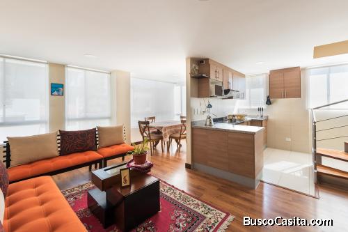 Rento departamento dúplex (dos pisos) completamente amoblado en el mejor sector de Quito, 2 dormitorios, 2 baños, estacionamiento cubierto, terraza independiente y bodega.