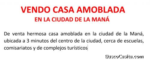 Vendo casaVendo hacienda ideal para ganadería o para impulsar proyecto turisticoVenta de casa en La Maná de oportunidad VENDO BONITA FINCA $ 89.000Casa en ventaVenta de Propiedad en zona comercial y céntrica de la ciudad.Propiedad apta para ganadería agricultura, tiene agua por diferentes sectores de la finca