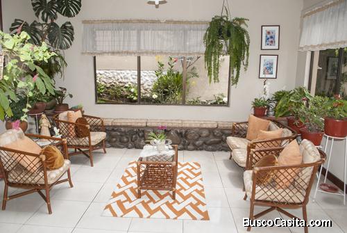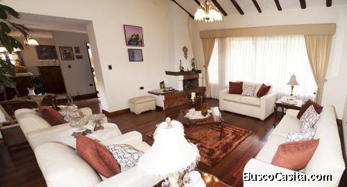 DESCRIPCIÓN DEL INMUEBLE: Hermosa villa, ubicada en una zona muy exclusiva, a pocos minutos del centro histórico, cuenta con jardines que rodean toda la propiedad. En la primera planta tiene, sala, bar, estudio, baños social, comedor principal, cocina, comedor diario y una sala de descanso, en la parte posterior cuenta con un dormitorio de servicio, con baño completo y área de lavandería. En la segunda planta cuenta con sala de tv amplia, dos dormitorios grandes con baño privado cada uno, y el dormitorio máster con cuarto de baño e hidromasaje. En la buhardilla existe un dormitorio amplio.