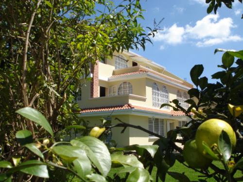 cuya distribución interna es la siguiente, Planta baja: Sala, comedor, cocina, baño completo, 2 dormitorios, área húmeda con hidromasajes, sauna y baños; Planta alta: Sala de estar, 2 dormitorios simples compartiendo un baño y un dormitorio master; Segunda planta: un amplio dormitorio con baño privado y balcón