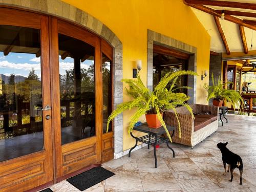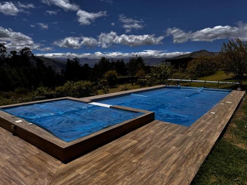 Dispone también de una piscina privada al aire libre, hermosos jardines, amplias áreas verdes, frutales y con una vista espectacular; sus acabados son elegantes y la madera es el material principal