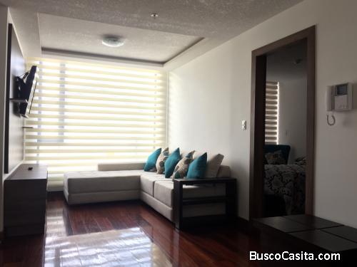 Hermosa suite completamente amoblada, cuenta con un dormitorio, sala, cocina con cocina de inducción, baño completo, calefón eléctrico, un balcón y un parqueadero.
