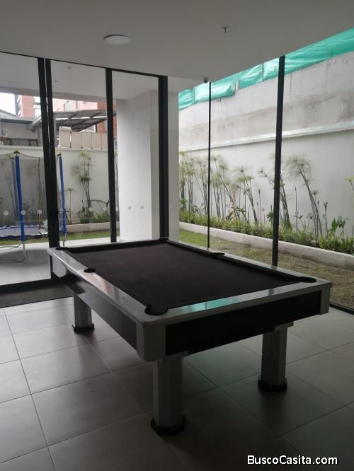 Se renta por estrenar hermosa suite semiamoblada, ubicada en el sector de la República, cuenta con sala, comedor, cocina incluye (cocina a inducción y horno eléctrico) baño y medio, cuarto de lavandería incluye ( lavadora, secadora), balcón, parqueadero propio y de visitas adicionalmente una bodega. En áreas comunales incluye: piscina, sauna, turco, salón de eventos, áreas verdes, bbq y gimnasio, servicio de guardianía las 24 horas.