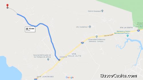 Vendo 8000m^2 de terreno a 15 minutos de lo que será el nuevo Aeropuerto de Guayaquil, a la altura del km 22 de la vía a la Costa, ingresando por la Cafetería Rally del Sol, vía de acceso asfaltada. Oportunidad de inversión a mediano y largo plazo, ideal para lotizar, sembríos o ganadería.