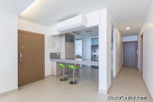 Nota: Completamente amoblado; incluye a/a, tv, cortina eléctrica, anaqueles, alacena, cocina eléctrica, horno, microondas, refrigeradora, lavadora- secadora.